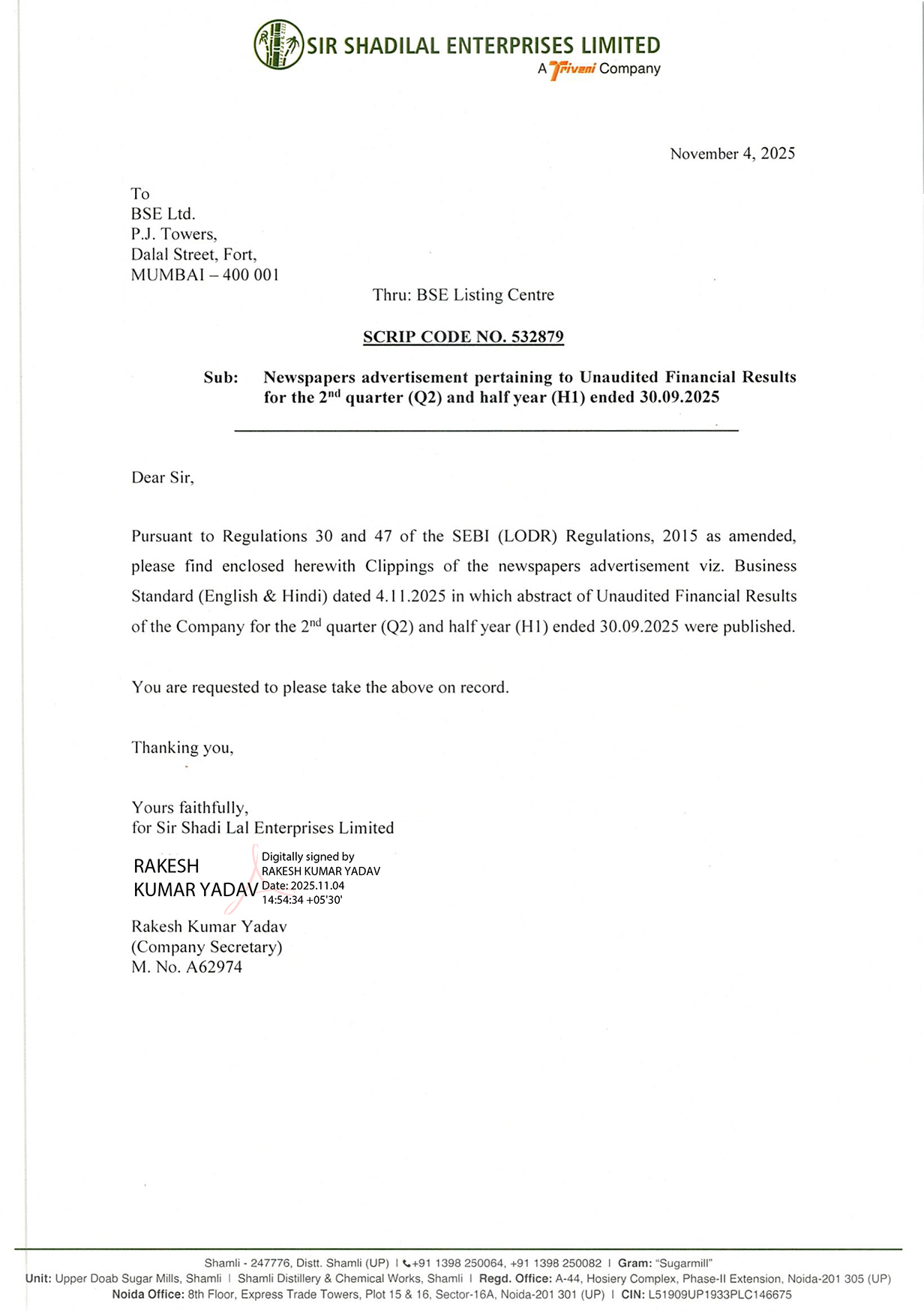 NEWSPAPER ABSTRACTS OF QUARTERLY RESULTS DATED